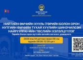 Нийтийн өмчийн хуулийн төслийн хэлэлцүүлэгт урьж байна4 сар 3. 18:43Улсын Их Хурлын Эдийн засгийн байнгын хороо, Монгол Улсын Их Хурлын даргын 2025 оны 529 дүгээр захирамжаар байгуулагдсан ажлын хэсгээс Нийтийн өмчийн хууль (Төрийн болон Орон нутгийн өмчийн тухай хуулийн шинэчилсэн найруулга)-ийн төслийн хэлэлцүүлгийг “Төрийн болон орон нутгийн өмчийн ангилал, удирдлага” сэдвээр 2026 оны 04 дүгээр сарын 08-ны Лхагва гарагт, 09.00 цагт явуулна