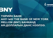 Төрийн банк АНУ-ын The Bank of New York Mellon банканд ам.долларын данс нээлээ