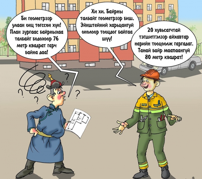 Уг нь иргэд мкв-ын зөрүүгүй орон сууц худалдан авах бололцоотой. Гэвч арайхийж олдсон зээлийн боломж, бас барилгын компанийн нэр хүндэд итгээд тэдний бэлдсэн гэрээний дагуу худалдаадп авчихдаг. Өөрөөр хэлбэл, худалдаж авсныхаа дараа л орон сууц нь мкв-ын зөрүүтэй байгааг мэддэг байгаа юм. Гэтэл 2009 онд Стандартчилал хэмжил зүйн үндэсний төвөөс баталсан “Орон сууцны барилгын доторх талбайг тооцох аргачлал” гэж бий. Түүнд “Орон сууц барилгын талбайн хэмжилтийг барилгын зураг төсөл боловсруулах тусгай зөвшөөрөл бүхий үйл ажиллагаа явуулдаг байгууллага хэмжилт хийнэ” гэж тусгасан.