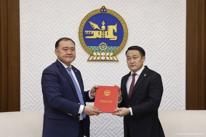 Монгол Улсын Их Хурлын дарга Д.Амарбаясгаланд (2025.04.30) Монгол Улсын нэгдсэн төсвийн 2026 оны төсвийн хүрээний мэдэгдэл, 2027-2028 оны төсвийн төсөөллийн тухай хуулийн төслийг Монгол Улсын Тэргүүн шадар сайд бөгөөд Эдийн засаг, хөгжлийн сайд Л.Гантөмөр өргөн барилаа.