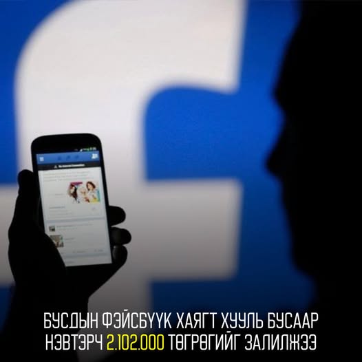 Тодруулбал, хохирогч иргэний фэйсбүүк хаягт танихгүй этгээд хууль бусаар нэвтэрч найз, нөхөд, ах, эгч нараас минь мөнгө гуйж нийт 2.102.000 төгрөгийг залилж авсан байна. Уг хэрэгт цагдаагийн байгууллагаас мөрдөн шалгах ажиллагааг явуулж байна.