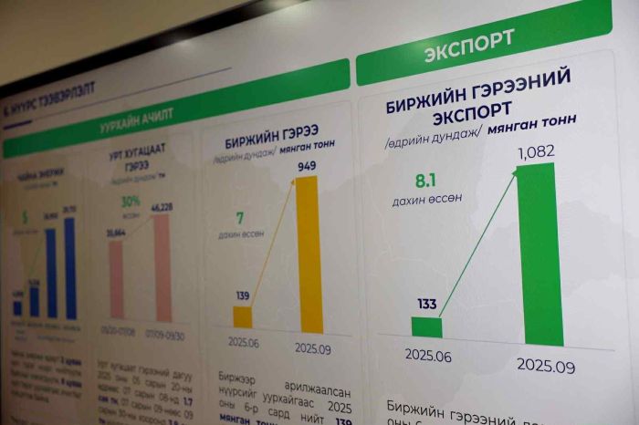 “Эрдэнэс Тавантолгой” ХК 2025 оны наймдугаар сард 2,7 сая тонн нүүрс, экспортолсон бол есдүгээр сард 3,2 сая тонн нүүрс Гашуунсухайт, Ханги боомтоор экспортолжээ. Есдүгээр сарын нүүрсний экспорт тус компанийн бүх цагийн үеийн экспортын хамгийн өндөр үзүүлэлт болжээ.