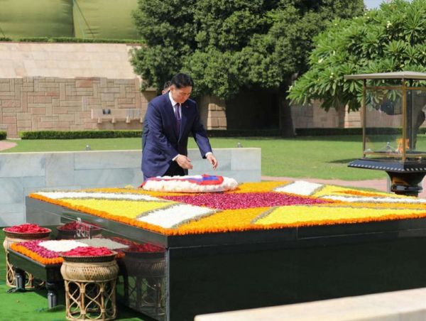 Монгол Улсын Ерөнхийлөгч Ухнаагийн Хүрэлсүхийн Бүгд Найрамдах Энэтхэг Улсад хийж буй төрийн айлчлал үргэлжилж байна. Ерөнхийлөгч У.Хүрэлсүх дэлхийн энх тайван, шударга ёсны бэлгэ тэмдэг болсон аугаа суут хүмүүн Махатма Ганди-гийн дурсгалын цогцолборт хүндэтгэл үзүүлж, цэцэг өргөлөө.