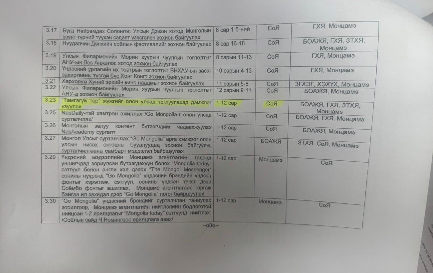 Хууль зүй, дотоод хэргийн сайд Б.Энхбаяр өөрийн цахим хуудсаараа дамжуулан Соёлын сайд асан Ч.Номинтой холбоотой баримт дэлгэлээ. Үүгээр зогсохгүй Монгол Улсын олон улс дахь сурталчилгаа, мэдээллийн үндэсний хороод Ерөнхий сайд асан Л.Оюун-Эрдэнэ байгуулсныг онцолжээ. Ингэхдээ “Ч.Номин сайдын 2024 оны 30-ны өдрийн тогтоолд "Тамгагүй төр" жүжгийг олон улсад тоглуулахад дэмжлэг үзүүлнэ гээд баталчихсан. Энэ Үндэсний хороог Л.Оюун-Эрдэнэ байгуулсан” гэв.
