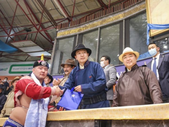 Бүгд Найрамдах Улсын 101 жилийн ойд зориулсан үндэсний бөхийн барилдаанд түрүүлж, үзүүрлэсэн болон их шөвөгт шалгаран үлдсэн бөхчүүдэд Улсын Их Хурлын дарга Н.Учрал бай шагналыг гардуулж баяр хүргэлээ. Тавын даваанд буюу шөвгийн наймд шалгарсан Улсын начин О.Түмэн, Б.Түвшинтөгс, аймгийн арслан Б.Бадрал, Б.Цагаанбанди нарын бай шагналыг Улсын Их Хурлын дэд дарга Ж.Бат-Эрдэнэ гардуулав. Өсөх ирээдүйтэй бөхийн шагналыг аймгийн хурц арслан У.Батцоожид олгож, Улсын Их Хурлын дэд дарга Б.Пүрэвдорж гардууллаа.