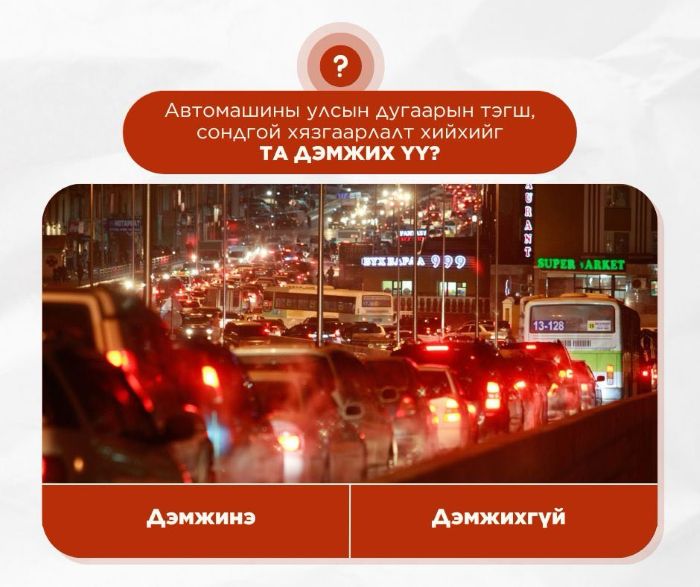 Үүнтэй холбоотойгоор иргэдээс автомашины улсын дугаарын тэгш, сондгойгоор зорчих хүсэлт ирсэн байна. Иймд иргэдийн хүсэлтийн дагуу автомашины улсын дугаарын тэгш, сондгой хязгаарлалт хийх эсэх талаар санал авч эхэллээ.