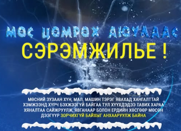 Цаашид цаг агаарын хүйтрэлтэй уялдан мөсний зузаан нэмэгдэх хэдий ч нуурын толио болон гол мөрний нийт уртын дагууд харилцан адилгүй, мөсний даац хүн, мал, тээврийн хэрэгсэл явахад хангалттай хэмжээнд хүрч бэхжээгүй байгаа тул цаг хожих, зам товчлох зорилгоор мөсөн дээгүүр явах болон авто тээвэр хийхгүй байхыг онцгойлон анхааруулж байна.