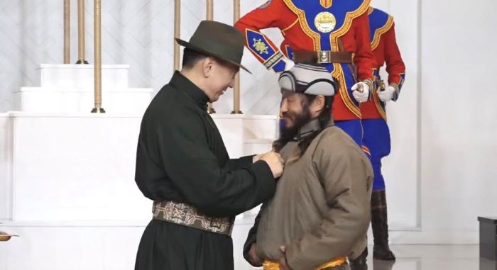 Үндэсний эрх чөлөө, тусгаар тогтнолоо сэргээсний 114 жилийн ойг тохиолдуулан Монгол Улсын Ерөнхийлөгч У.Хүрэлсүх төрийн дээд цол, одон, медаль гардуулж байна