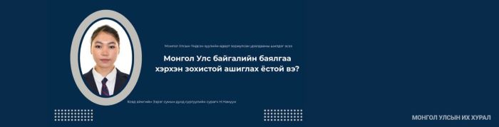 Хэрвээ бид байгалийн баялгийг ухаалгаар ашиглахгүй бол ирээдүйд эдийн засгийн ашиг ч үгүй, эрүүл орчин ч үгүй хоосон нутаг л үлдэнэ. Би ирээдүйд байгалийн сүйрлийг хүлээж авах бус, харин байгальтайгаа зохицон амьдарч буй Монголыг харахыг хүсдэг. Тиймээс миний бодлоор байгалийн баялгийг хамгаалах нь зөвхөн төрийн үүрэг бус, иргэн бүрийн ухамсрын асуудал юм. Өнөөдөр бид жижиг мэт санагдах буруу сонголтуудыг хийсээр байвал маргааш түүнийхээ үр дагаврыг зайлшгүй амсана. Харин одоогоос зөв бодлого, зөв хандлага, зөв ухамсрыг сонгож чадвал байгалийн баялаг маань хараал биш, харин ирээдүйн боломж болж чадна. Би ирээдүйд “яагаад бид тухайн үед анхаараагүй юм бол” гэж харамсахыг хүсэхгүй. Харин “бид алдаагаа ойлгож, засаж чадсан” гэж хэлэх Монголд амьдрахыг хүсэж байна. Энэ бол миний итгэл, миний сонголт, миний ирээдүйн төлөөх байр суурь юм. Байгалийн баялгийг зөв ашиглах, хамгаалах ойлголтыг бага наснаас нь төлөвшүүлбэл ирээдүйд хариуцлагатай иргэн бий болно. Мөн орчин үеийн технологийг ашиглан байгальд ээлтэй олборлолт, нөхөн сэргээлтийг бодитоор хэрэгжүүлэх шаардлагатай.