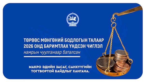 Монгол Улсын Их Хурлаас 2025 оны намрын ээлжит чуулганаар Төрөөс мөнгөний бодлогын талаар 2026 онд баримтлах үндсэн чиглэлийг батлах тухай тогтоолыг баталсан. Энэхүү шийдвэрийн үр дүнд Төв банкны зүгээс цахим шилжилт, олон улсын худалдаа, харилцаанд гарч буй өөрчлөлт, түүний нөлөөгөөр олон улсын мөнгө, санхүүгийн тогтолцооны хувьсан өөрчлөгдөж буй орчинд макро эдийн засаг, санхүүгийн тогтвортой байдлыг хангаж ажиллана. Үүний үр дүнд эдийн засгийн өсөлтийг тогтвортой хадгалж, иргэдийн орлогыг хамгаалах бодлого, валютын ханш уян хатан тогтох зарчим баримтална. Мөн болзошгүй эрсдэлийг үнэлж, удирдах макро зохистой бодлогыг мөнгөний бодлоготой хослуулахаар шийдвэрлэсэн юм.