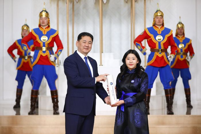 Тэтгэлэгт хөтөлбөрийн эзэд болж, эх орондоо бэлтгэл хөтөлбөрт суралцаж байгаа оюутнуудад Ерөнхийлөгч У.Хүрэлсүх сурлагын өндөр амжилт хүсэж, захиа, даалгавар гардууллаа.