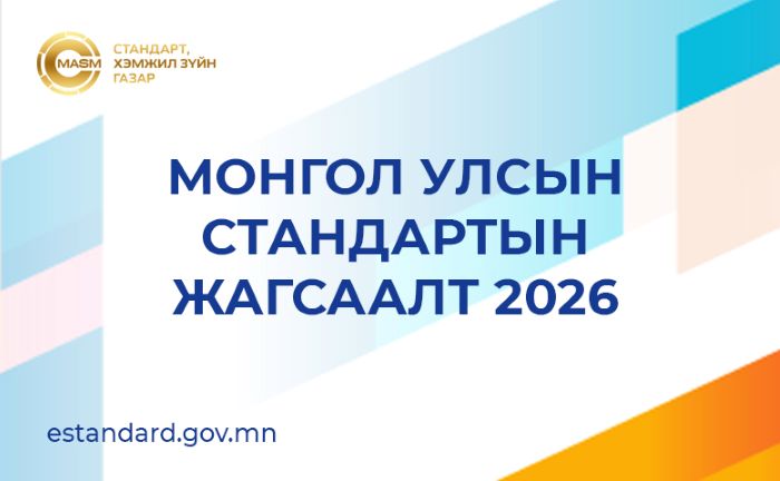 Энэхүү жагсаалт нь 2026 оны 02 дугаар сарын 06-ны байдлаар Монгол Улсын стандарт, техникийн зохицуулалтын улсын мэдээллийн нэгдсэн санд бүртгэлтэй хүчин төгөлдөр хэрэгжиж буй 6709 стандартын мэдээллийг олон улсын стандартын ангилалтын дагуу бүлэглэн ангилсан мэдээллийг агуулсан болно.