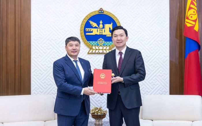 Монгол Улсын Их Хурлын дарга Н.Учралд (2026.03.18) Гэр бүл, хөдөлмөр, нийгмийн хамгааллын сайд Т.Аубакир Хувийн нэмэлт тэтгэврийн тухай хуулийн төслийг өргөн мэдүүлэв.