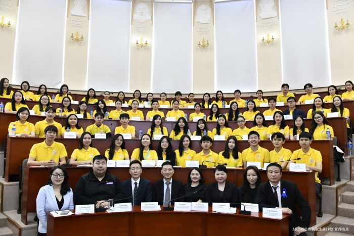 “Өсвөрийн парламент-2025” хөтөлбөрт оролцогч гишүүдэд хууль тогтоох үйл явцын үе шат, хэлэлцүүлэг, санал хураалтын үйл ажиллагааг бодитоор туршуулах зорилгоор “Загвар чуулган”-ы хуралдааныг өнөөдөр /2026.03.21/ МУИС-ийн хичээлийн байранд зохион байгууллаа.