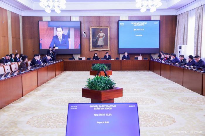 Улсын Их Хурлын Төрийн байгуулалтын байнгын хорооны өнөөдрийн /2026.03.30/ хуралдаан Улсын Их Хурлын гишүүн А.Ариунзаяа, Ж.Бат-Эрдэнэ, Б.Батбаатар, Ж. Батжаргал, Б.Баярбаатар, С.Бямбацогт, А.Ганбаатар, С.Зулпхар, Ц.Идэрбат, Ч.Лодойсамбуу, Л.Мөнхбаатар, Ч.Номин, Н.Номтойбаяр, Б.Пүрэвдорж, Ц.Сандаг-Очир, Н.Учрал, Б.Хэрлэн, Ө.Шижир, Л.Энх-Амгалан, Д.Энхтуяа нар буюу гишүүдийн 62.5 хувийн ирцтэйгээр 09 цаг 23 минутад эхэллээ.