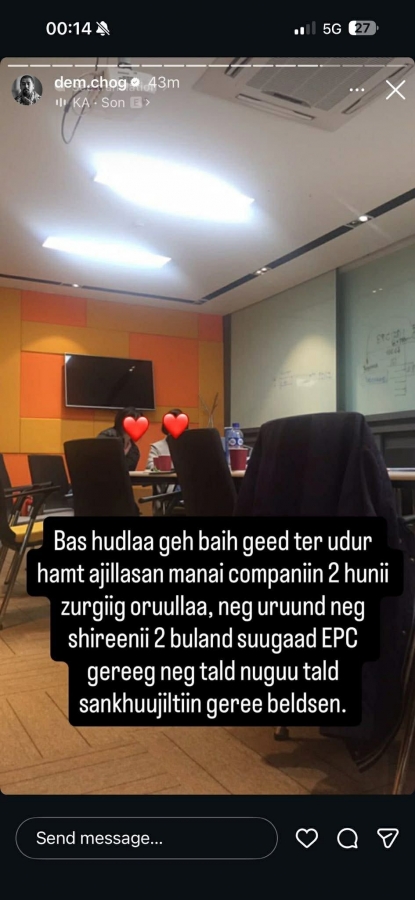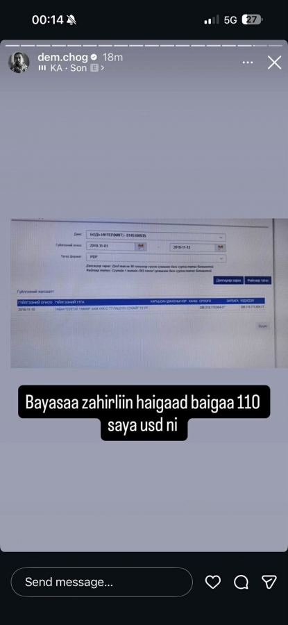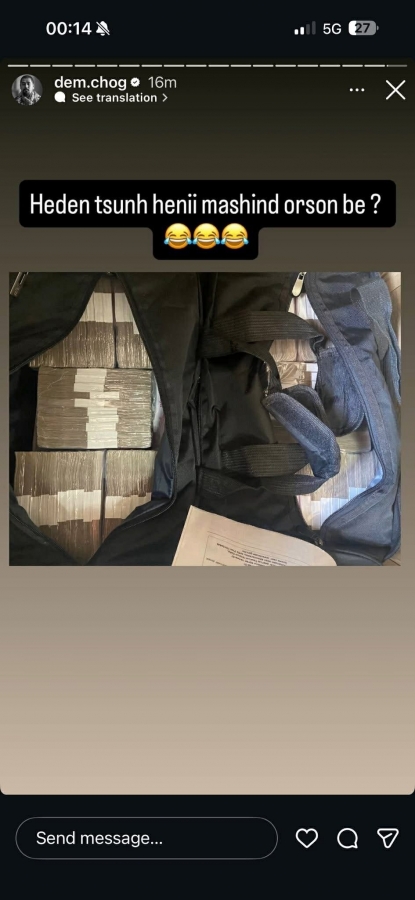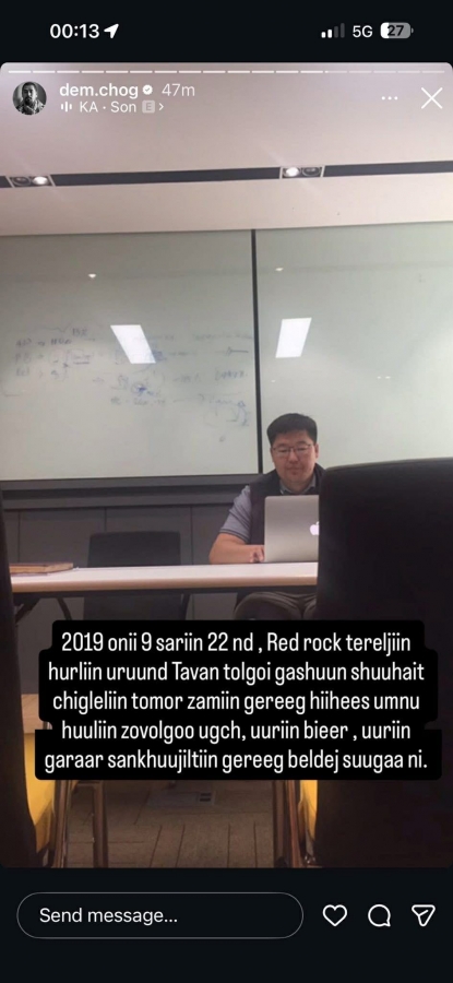 Б.Энхбаяр өнгөрсөн баасан гарагт (2026.04.03) УИХ-ын чуулган дээр гишүүдийн асуултад хариулахдаа “Л.Оюун-Эрдэнэ АТГ-т ямар ч нотлох баримт өгөөгүй” гэсэн юм. Тэгвэл “Бодь интернэшнл” ХХК-ийн гүйцэтгэх захирал асан А.Амундра өчигдөр шөнө (2026.04.04) Л.Оюун-Эрдэнийн мэдээлэлтэй холбоотой зарим гэрэл зургийг инстаграмд сторидлоо. Тэрбээр Хууль зүй, дотоод хэргийн дэд сайд Д.Мөнх-Эрдэнийн гэрэл зургийг “2019 оны есдүгээр сарын 22-нд. “Red rock Тэрэлж”-ийн хурлын өрөөнд Тавантолгой-Гашуунсухайт чиглэлийн төмөр замын гэрээг хийхээс өмнө хуулийн зөвлөгөө өгч, өөрийн биеэр, өөрийн гараар санхүүжилтийн гэрээг бэлтгэж суугаа нь” гэсэн тайлбартайгаар сторидсон бол цүнхтэй мөнгөний зураг сторидохдоо “Хэдэн цүнх хэний машинд орсон бэ” гэжээ. Үүнээс гадна “Голомт”-ын Д.Баясгалан саяхан Eagle телевизэд ярилцлага өгөхдөө 110 сая ам.долларын асуудлыг няцаасан бол А.Амундра “Тавантолгой төмөр зам”-аас “Бодь интернэшнл” ХХК руу 2019 оны арваннэгдүгээр сарын 13-нд 286 тэрбум 318 сая 170 мянга 504 төгрөгийн гүйлгээний баримтыг дэлгэлээ. А.Амундрагийн хувьд, “Бодь интернэшнл” ХХК-ийн гүйцэтгэх захирлаар ажиллаж байхдаа Гашуунсухайт-Ганцмод боомтын чиглэлд төмөр зам барих төслийг удирдаж байсан. Өөрөөр хэлбэл, Л.Оюун-Эрдэнийн мэдээлсэн 110 сая ам.долларын авлигын хэргийн гол гогцоог тайлах хүмүүсийн нэг гэж учир мэдэх хүмүүс ярьдаг. Б.Энхбаяр өөрийг нь “Монголын топ оффтэйкчин” гэсний хариуд А.Амундра өнгөрсөн намар түүнд хандан “Би танд бүгдийг нь яриад өгье. Намайг гэрчийн хамгаалалтад аваад ярих боломж олгочих. Үнэн ганц л байдаг. Би яг үнэнийг ярья. Мөнгө мөртэй шүү. Олон нийтэд хандаад нээлттэй ярьчихъя. Оройгүй байвал аймаар уу. Орой байгаа л даа. Тэр үеийн ҮАБЗ-ийн гурван гишүүн байгаа. 2019 оны тухай ярьж байна шүү. Манай үнэний туйл чадахгүй л дээ, даанч” гэж инстаграмд сторидож байсан юм. Гэвч Б.Энхбаяр “А.Амундра гэрчийн хамгаалалтад орох этгээд биш” хэмээн сэтгүүлчдэд ярьж байв.