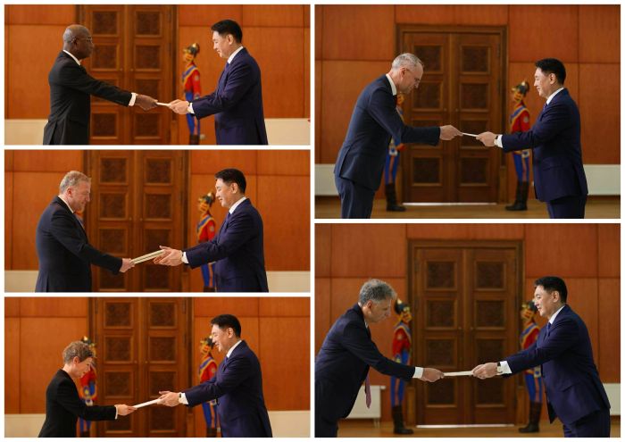 Монгол Улсын Ерөнхийлөгч Ухнаагийн Хүрэлсүхэд гадаадын орнуудаас Монгол Улсад хавсран суух Элчин сайдууд Итгэмжлэх жуух бичгээ өргөн барилаа.