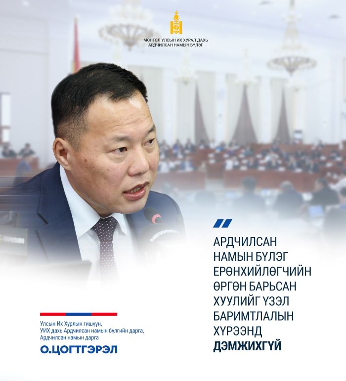 АН-ын бүлгийн хуралд 25 гишүүн оролцсноос 25 гишүүн энэхүү хуулийн төслийг үзэл баримтлалынх нь хувьд дэмжихгүй байгааг дэмжлээ. УИХ-ын гишүүнд хуулийн хариуцлага тооцох ёстой. Одоо мөрдөгдөж байгаа хуулинд ч УИХ-ын гишүүнийг эгүүлэн татах харилцаа байдаг. Одоо яригдаж байгаа хуулинд УИХ-ыг ямар ч дархлаагүй болгох үзэл санаа явж байгаа. Энэ бол Монгол Улсын УИХ-ын парламентийн тогтолцооноос ухарсан үйлдэл" гэлээ.