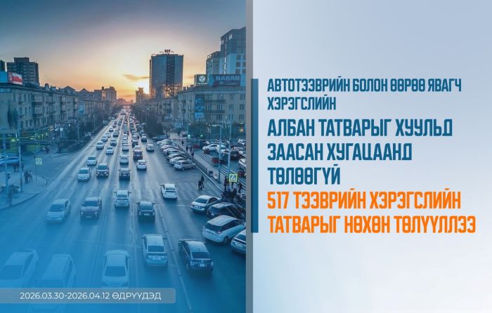 Нийслэлийн замын хөдөлгөөний хяналтын газраас хяналтын камерыг ашиглан гудамж замын хяналт шалгалтыг үе шаттай хэрэгжүүлж байна. Тодруулбал, өнгөрсөн гуравдугаар сарын 30-наас дөрөвдүгээр сарын 12-ны өдрүүдэд жолоочийн хариуцлагын албан журмын даатгалд хамрагдаагүй 1785 хүнд холбогдох арга хэмжээг авч ажиллалаа. Мөн тээврийн хэрэгслийн техникийн хяналтын үзлэг, оношилгоонд хамрагдаагүй 2574 хүнд холбогдох арга хэмжээг авч, Автотээврийн болон өөрөө явагч хэрэгслийн албан татварыг хуульд заасан хугацаанд төлөөгүй 517 тээврийн хэрэгслийн татварыг нөхөн төлүүллээ.