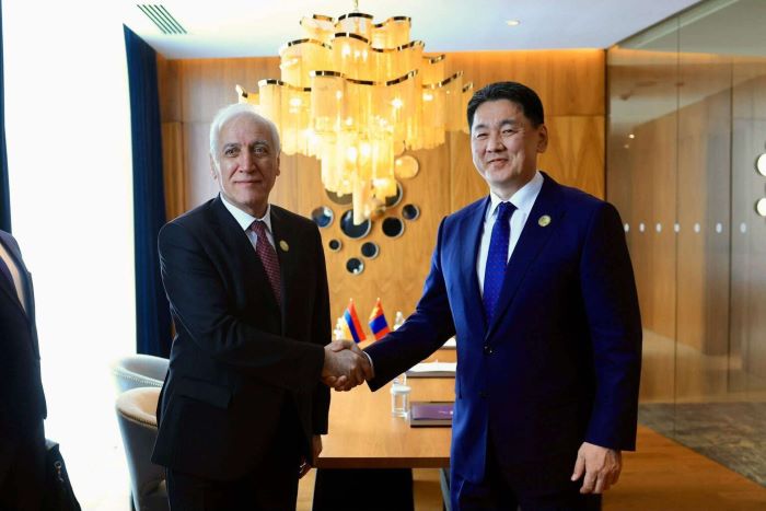 Ерөнхийлөгч У.Хүрэлсүх Казахстан Улсын Астана хотноо Экологийн асуудлаарх бүс нутгийн дээд түвшний уулзалтад оролцох үеэрээ Бүгд Найрамдах Армени Улсын Ерөнхийлөгч Ваган Хачатурянтай уулзав.